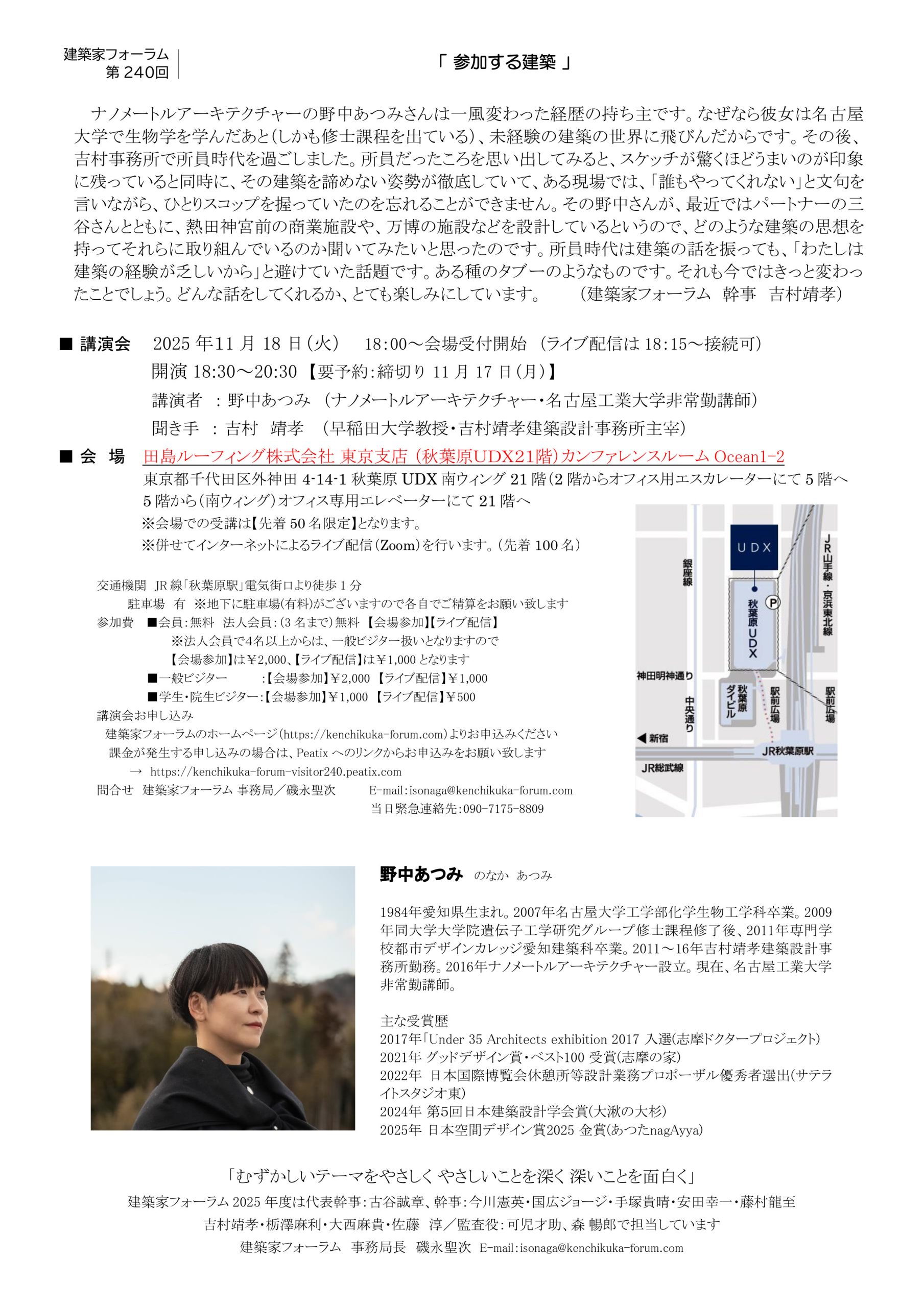 【第240回(2025/11/18)<「 参加する建築 」>】